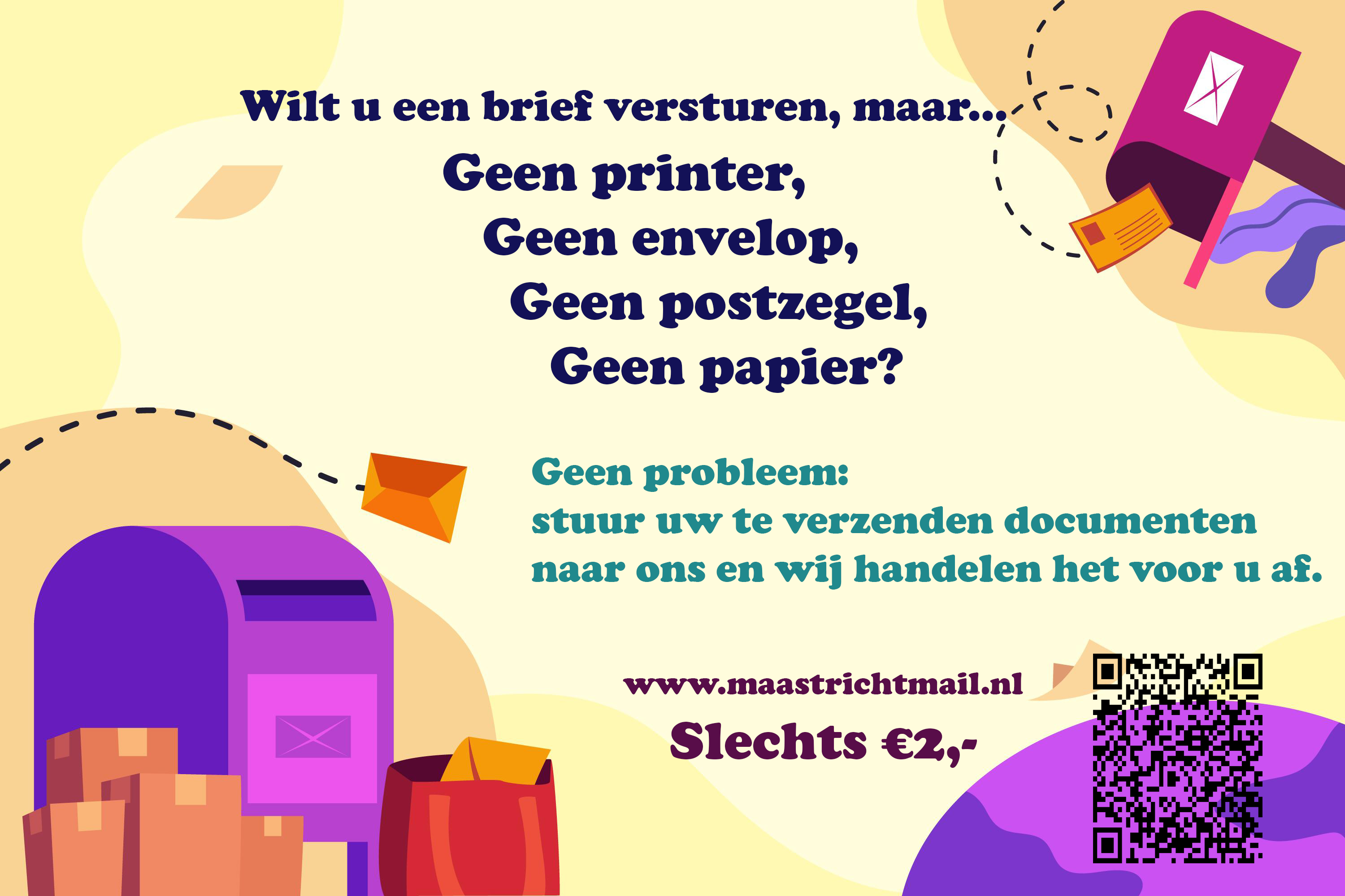 Het ophalen van post en pakketten en het ophalen en bezorgen van postbus post doen wij enkel in Maastricht, Meerssen, Bunde, Berg en Terblijt, Bemelen, Cadier en Keer, Gronsveld, Eijsden-Margraten, Maastricht-Aachen Airport en Beek.